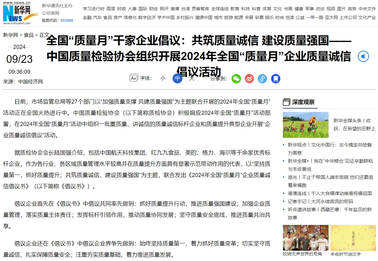 【全國“質量月”】紅九九食品等千家企業(yè)倡議:共筑質量誠信 建設質量強國